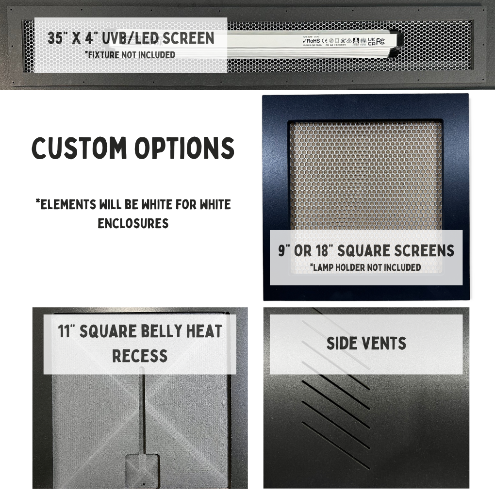 Embrace the uniqueness of our custom-made PVC reptile habitats, each meticulously handcrafted with care. While visible variations or imperfections may be present, they won't impact the functionality of the enclosure. Please note that all custom reptile cage dimensions are approximate, ensuring a personalized touch for your pet's living space.